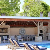 - Amenities: 1st Floor Bedrm, Back Yard, Balcony, Cathedral/Vaulted/High Ceiling, Chefs Kitchen, Entrance Foyer, Fenced, Fire Pit, First Floor Full Bath, Full, Hardwood Floors As Seen, High Ceilings, In Ground, Kitchen Island, Laundry Room, Lighting, Living Room, Mailbox, Open Floorplan, Open Kitchen, Other, Outdoor Pool, Pantry, Patio, Pool/Spa Combo, Public, Quartz/Quartzite Counters, Recessed Lighting, Salt Water, Shed(s), Smart Thermostat, Vinyl, Wood Burning