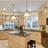 - Kitchen: Bay/Bow Window, Dinette, Floor - Porcelain, Dec Molding, Marble, Kitchen/Dine, Breakfast Cntr, Sliding Door, Newer, French Doors, Eat-In, Center Island