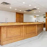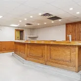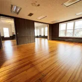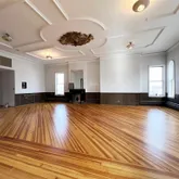 The street-level first story features a meeting room, offices, and a lavatory, alongside an apparatus bay added in 1924 on the east side. Ascend to the second story and discover a dramatic and grand gathering room with refinished southern yellow heart pine vertical grain wood floors illuminated by beautiful arched windows. The room's focal point is an original plaster medallion on the ceiling, uniquely designed with a firehouse motif. The east side of this level offers picturesque views of Mount Beacon and includes a spacious, mess hall-style kitchen, once the hub for community events.