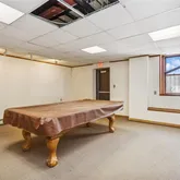 Below the first story lies an unexpected and inviting clubhouse area. This space boasts a handsome oak bar, a brick and stone mechanical room which could also make an amazing wine cellar, and a pool table game room. Step outside to a surprisingly large deck, enveloped by trees, offering a magical and private setting for gatherings and entertaining.