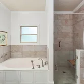 - Interior Features: Bookcases, Breakfast Bar, Ceiling Fan(s), Ceramic Tile Shower, Commode Room, Crown Molding, Double Vanity, Eat-in Kitchen, Entrance Foyer, High Ceilings, Kitchen Island, Knocked Down Ceilings, Open Floorplan, Pantry, Primary Downstairs, Soaking Tub, Sound System, Tray Ceiling(s), Walk-In Closet(s)