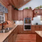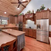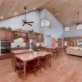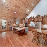 - Kitchen Features: Breakfast Bar, Cabinets Stain, Eat-in Kitchen, Kitchen Island, Pantry, Solid Surface Counters, View to Family Room