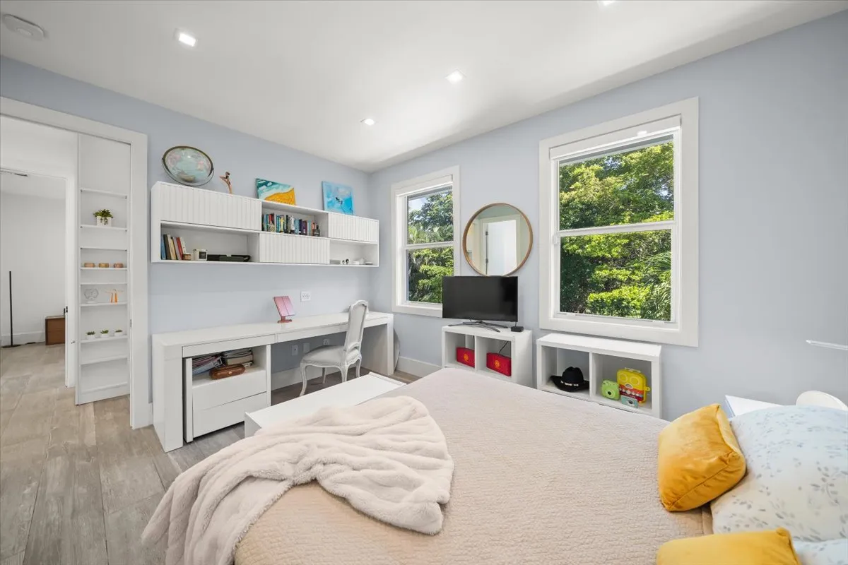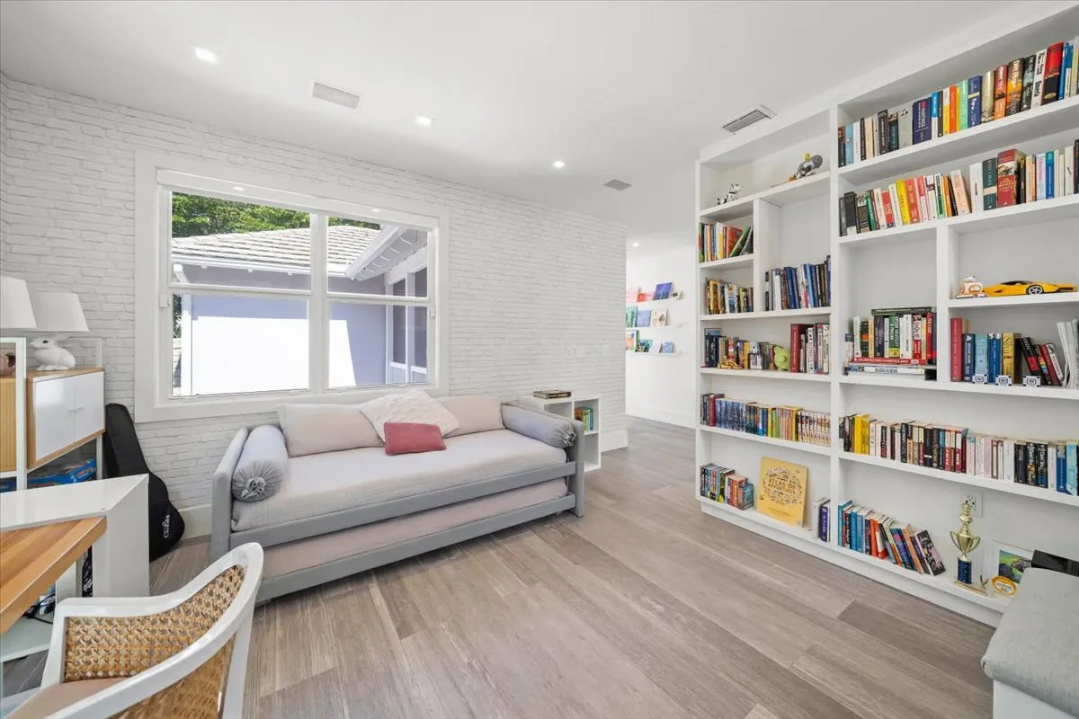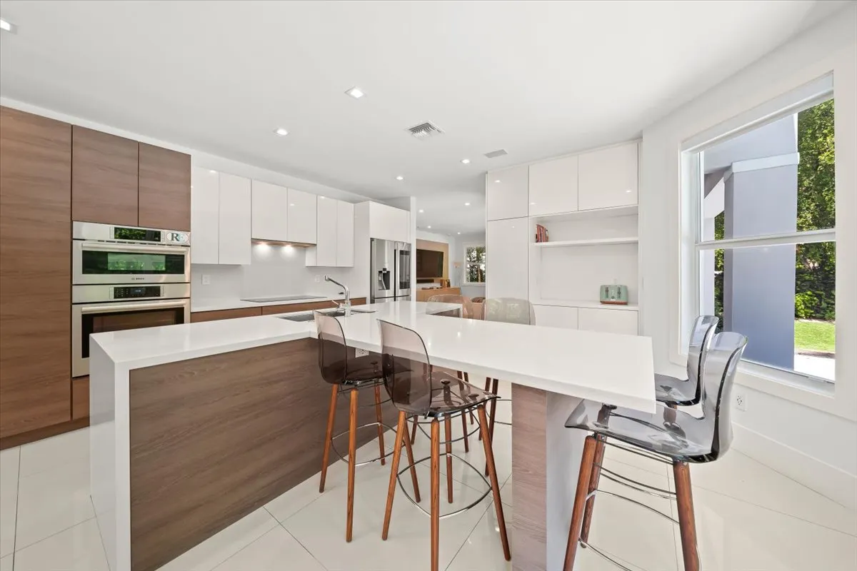Inside, enjoy impact windows, an updated kitchen and bathrooms, and stylish modern finishes filled with natural light. The spacious garage, equipped with two dedicated A/C units for a home gym, built-in cabinets, an EV charger, and an extra refrigerator, adds exceptional functionality.