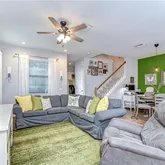 - Interior Features: Cathedral Ceiling(s), Ceiling Fan(s), Eating Space In Kitchen, High Ceilings, Kitchen/Family Room Combo, Living Room/Dining Room Combo, Open Floorplan, PrimaryBedroom Upstairs, Thermostat, Walk-In Closet(s)