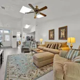 - Interior Features: Ceiling Fan(s), High Ceilings, Kitchen/Family Room Combo, Thermostat, Walk-In Closet(s), Window Treatments