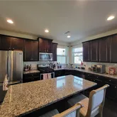 - Kitchen Features: Cabinets Stain, Kitchen Island, Pantry, Stone Counters, View to Family Room