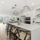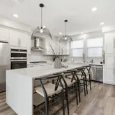 - Kitchen: Cooktop - Gas, Countertop - Quartz, Island, Oven - Built-In