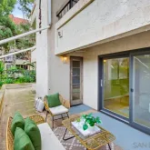Lush garden end unit location in Presidio Place! This 1st floor one bedroom condo is the larger floorplan at 854 sq ft & features the additional half bathroom. Corner unit that provides extra privacy & a wrap around garden for peaceful views from all the windows. Large living room with space for a dining table, a fireplace & direct access to the patio. The bedroom has a slider to the patio & large vanity space/sink with an additional sink/vanity inside the main bath area. The open kitchen has lots...Lush garden end unit location in Presidio Place! This 1st floor one bedroom condo is the larger floorplan at 854 sq ft & features the additional half bathroom. Corner unit that provides extra privacy & a wrap around garden for peaceful views from all the windows. Large living room with space for a dining table, a fireplace & direct access to the patio. The bedroom has a slider to the patio & large vanity space/sink with an additional sink/vanity inside the main bath area. The open kitchen has lots of storage & a breakfast bar. Upgrades include: newer dual pane vinyl windows/slider with blinds, new refrigerator, dishwasher & range oven in 2025, updated HVAC system, ceiling fans, & LED lighting. Next to the half bath at the entry is a large storage closet & an additional closet with laundry hookups for your own private in unit washer/dryer. Back patio wraps all the way around the side of the unit, sits up from the street & has additional storage cabinets. Gated community garage with 1 assigned parking space for the unit. Presidio Place has all the amenities for resort style living: multiple pools, hot tubs, sunning decks, racquetball, tennis, pickleball, basketball, on site security, guest parking, walking paths, green spaces, water features & more. Very convenient central location in San Diego…short drive to Mission Bay, University of San Diego, Mission Valley & Fashion Valley shopping or Downtown. New Riverwalk project coming soon nearby!