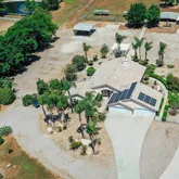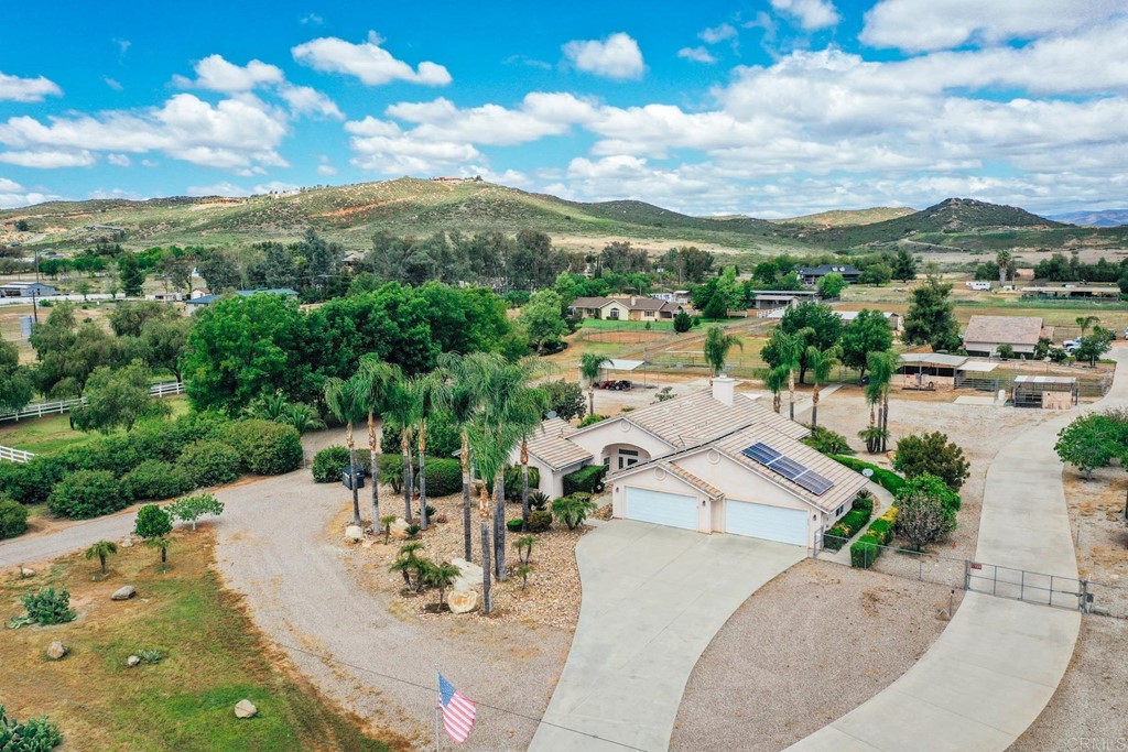 - Supplement: RARE FIND 4.66 acres, all useable, full horse facility completely fenced in prime location w/ panoramic views of the MTNS + indefinite riding trails. This property features 3 lg. horse paddocks, 11 cov'd stalls in addition to 1 stud corral, automatic waters, metal feeders, 3 wash racks, JERRY MEYERS speed controlled hot walker, feed + equipment covered storage + seatrain for hay storage. White railed vinyl fencing leads to circular drive + custom Ranch styled 3+ BR/2.5BA with 2X6 construction, seller owned SOLAR, dramatic vaulted ceilings, inviting corner stone fireplace w/ hearth, spacious KIT w/ nook, formal DR, MBR suite w/ spa tub separate from shower, DBL sinks + walk-in closet, slider to rear cov'd patio + 4 car att. gar. Other property features include DET 1BR/1BA fully equipped ADU w/ att. gar., assorted fruit trees, mature shade trees + palms. WORTH THE LOOK AND WORTH THE PRICE. Note zone summary+list of improvements attached!!!