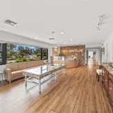 The open-concept living and dining areas are flooded with natural light and designed to maximize the penthouse perspective. A versatile entry-side closet with a window offers flexibility as a potential workspace or owner’s storage, enhancing the home’s livability. Both bedrooms are generously sized to accommodate king beds, while the spa-inspired bathrooms showcase walk-in showers with floor-to-ceiling tile and refined modern finishes. A dedicated laundry room with full-size washer and dryer and custom storage completes the residence.