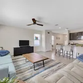 - Interior Features: Ceiling Fan(s), High Ceilings, Living Room/Dining Room Combo, PrimaryBedroom Upstairs, Solid Surface Counters, Split Bedroom