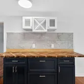 Brand-new kitchen featuring custom cabinetry, Quartz countertops, Arcadia butcher block, and all-new stainless steel appliances