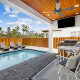 - Exterior: Balcony, BBQ PitGrill, Columns, Fenced Back Yard, Fenced Privacy, Lawn Pump, Patio Open, Pool - Heated, Pool - In-Ground, Porch, Shower, Sprinkler System, Summer Kitchen