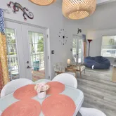 A. Rent this as is. It's furnished, turnkey, and ready to go TODAY. Everything conveys with purchase. Wraparound porch provides great outdoor living space. B. Enclose and build out the bottom level to add square footage and more bedrooms. Seller has construction documents to share with you and your lender, immediately saving you thousands....You can't even buy a LOT in Frangista for this price! CHOOSE YOUR OWN ADVENTURE for this vacation rental property located LESS THAN TWO BLOCKS FROM DEEDED BEACH ACCESS:
