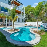The fourth floor is a true highlight of the home featuring a viewing deck with expansive Gulf views. Thoughtfully designed for enjoyment even on less-than-ideal weather days, Pine and Palm boasts four large outdoor living areas, ensuring ample space for all guests as well as numerous indoor entertainment.