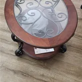 Oval glass-top mahogany coffee table