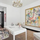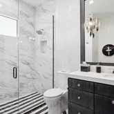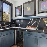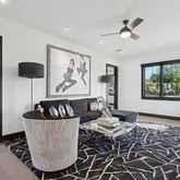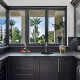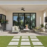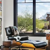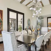 Meanwhile, the central kitchen boasts a four-foot sink beneath a window that disappears into the wall, allowing the space to open up to the outdoors. The primary suite is its own sanctuary, featuring a private, spa-like courtyard that overlooks Camelback and an additional patio facing the resort-style backyard. Inside, features include Grecian marble, dual water closets, and a Venetian plaster fireplace, all of which elevate everyday living. Each secondary bedroom features an en-suite bathroom with a walk-in closet, offering privacy and comfort for family or guests. A split floor plan features a flexible secondary wing with a dedicated flex space adjacent to two en-suite bedroomsideal for a media room, playroom, or private lounge. The junior primary suite enjoys its own charming patio and French doors.