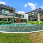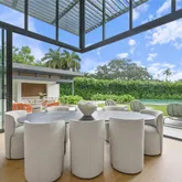 Resort-style grounds complete the offering, showcasing an infinity-edge pool, guest house, and lush, tranquil landscaping that enhances the sense of seclusion. A rare opportunity to own a newly built, design-forward residence in one of Pinecrest’s most desirable settings.