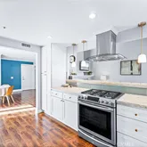 Tucked away as a prized end unit, this home enjoys added privacy and a lush grassy side yard that feels like your own park. Thoughtfully renovated with modern elegance, every detail reflects contemporary design and comfort. The chef-inspired kitchen features crisp white cabinetry, quartz countertops, a stylish tile backsplash, and stainless steel appliances perfectly blending function and flair.