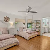 A separate guest house, provides flexible space for guests, a studio, or private office. The backyard is a tranquil haven—completely private and framed by mature trees, ambient lighting, and lush gardens that invite evening gatherings under the stars.