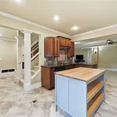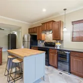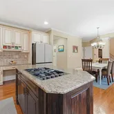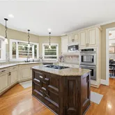 - Kitchen Features: Cabinets Stain, Pantry, Stone Counters, Kitchen Island, Second Kitchen, Breakfast Bar, Solid Surface Counters
