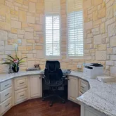 - Flooring: Ceramic Tile, Travertine Stone, Wood