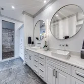 - Room Features: Built-in Cabinets, Double Shower, Dual Sinks, Ensuite Bath, Garden Tub, Jetted Tub, Natural Stone/Granite Type, Second Sink, Separate Shower, Shower Body Sprays, Steam Shower