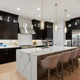 - Room Description: 10 Foot Waterfall Island, Custom Cabinetry to the Ceiling, Jenn Air Stainless Appliances, 48" Range plus Wall Ovens-4 Total, Beverage Cooler, Microwave, Walk-In Pantry