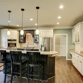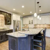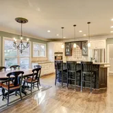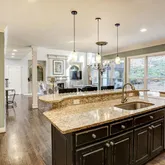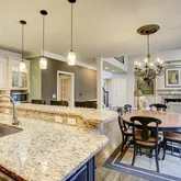 - Kitchen Features: Breakfast Bar, Breakfast Room, Cabinets White, Eat-in Kitchen, Kitchen Island, Solid Surface Counters, View to Family Room