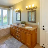 - Bathroom: Double Sinks, Full on Ground Floor, Half on Ground Floor, Primary - Oversized Tub, Primary - Stall Shower(s), Outside Access, Shower and Tub, Stall Shower - 2+, Steam Shower, Tubs - 2+