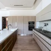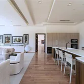 Behind private electric gates in the heart of Preston Hollow, the home stands as a true modern estate—architecturally bold yet effortlessly livable. Every space is designed for both grand entertaining and comfortable family living, blending clean lines with warm, natural textures.