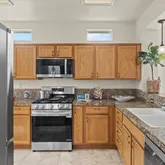 - Appliances: Free Standing Gas Range, Free Standing Refrigerator, Ice Maker, Dishwasher, Disposal, Microwave