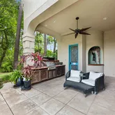 - Exterior Features: Covered Patio, Deck, Fence, Spa/Hot Tub, Sprinkler Irrigation, Outdoor Kitchen, Porch, Patio, Private Yard