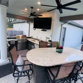 - Exterior Features: Covered Patio, Deck, Fence, Sprinkler Irrigation, Outdoor Kitchen, Patio