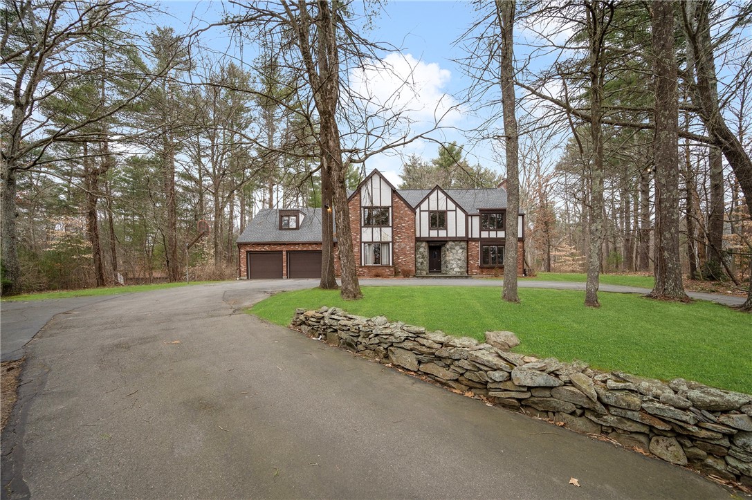 Majestic brick/stone front Tudor offering nearly 4400' of living space including 1200' in the lower level plus an additional 576' of expansion capability above the oversized 2 car garage beautifully set on 1.38 acres and conveniently located near Hillside CC, the Seekonk line and about 15 mins to Providence. Multiple features including 28x16 living room with fireplace, sunroom, spacious fireplaced family room adjacent to the large dine-in kitchen, formal dining room, primary suite with soaring cathedral...Majestic brick/stone front Tudor offering nearly 4400' of living space including 1200' in the lower level plus an additional 576' of expansion capability above the oversized 2 car garage beautifully set on 1.38 acres and conveniently located near Hillside CC, the Seekonk line and about 15 mins to Providence. Multiple features including 28x16 living room with fireplace, sunroom, spacious fireplaced family room adjacent to the large dine-in kitchen, formal dining room, primary suite with soaring cathedral ceiling finished in natural wood with en-suite bathroom, whirlpool room with balcony, 3 additional spacious bedrooms and full finished basement with flex space for offices and recreational use plus a workshop. Natural solid wood wall covering is found in the foyer, landing and family room and wood flooring runs throughout the entire house except kitchen and baths. The private level rear yard features a patio and large shed. Come and see this very special home and then make it your own.
