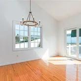 The first floor is spacious and bright with a vaulted ceiling, three walls of windows, and beautiful views.