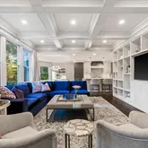 The gourmet kitchen is a chef's dream, equipped with premium appliances including a Sub-Zero refrigerator and freezer, 5-burner Wolf gas range, and Wolf double ovens. It's designed for both culinary creativity and everyday function. The kitchen flows seamlessly into a breakfast room and family room streaming with natural light.
