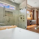 60 Barton Ridge Drive delivers luxury, privacy, and panoramic views with effortless access to the best of Breckenridge. With 6 bedrooms (including a versatile loft), a separate au-pair suite, and multiple living areas, this estate offers ample space for your whole family to create lasting memories. Designed to embrace the landscape, the home features southern exposure and oversized windows that bring the outdoors in. Rich stone accent walls...Welcome to the height of mountain modern living on Peak 7.