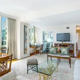Incorporating a split layout, you are guided either to the western side of the apartment where you will find an elaborate primary bedroom suite with large five-fixture windowed bathroom, or to the eastern wing of the home where the main living/dining area, chef’s kitchen, half bath for guests along with the secondary bedroom, also with its own ensuite bath, await you. Floor to ceiling windows in this portion of the apartment, complimented by high ceilings, enhance and frame the views from the living space and the flow of the unit makes it ideal for entertaining family, friends and business associates. The kitchen is perfect for preparing that perfect meal and large enough to enjoy a morning beverage at the breakfast bar while gazing out the south-facing window. When entertaining, the area can be closed to all with two cleverly designed pocket doors, providing a more intimate experience.