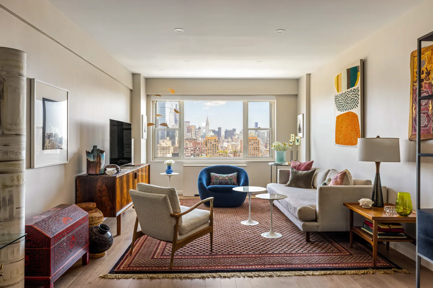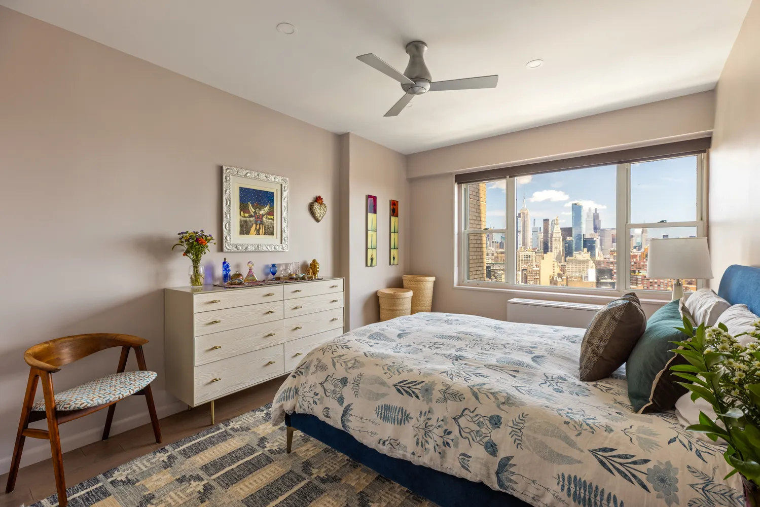 Down a discreet hallway lie two bedrooms, a guest bath, and that unicorn of Manhattan real estate: a utility closet. The primary bedroom boasts a walk-in closet that walks the walk, separate linen storage, en-suite bathroom, and those same jaw-dropping views. The second bedroom doubles as the perfect home office, with built-in desk and enough closet space to hide evidence of your online shopping addiction.