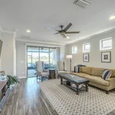 Welcome to Bridge Bay at Bannon Lakes, an Active Adult community! A two bedroom home with an additional flex with (double custom made barn doors). Open floor plan with Island, upgraded gas stove, new refrigerator (2021), deep SS sink. tile flooring. Owners suite features step tray ceiling with inset lighting. Luxury bath with granite countertops, comfort height sinks. Walk in shower with glass doors. A beautiful extended screened lanai with lakes views has tongue in groove wood ceiling and canned...Welcome to Bridge Bay at Bannon Lakes, an Active Adult community! A two bedroom home with an additional flex with (double custom made barn doors). Open floor plan with Island, upgraded gas stove, new refrigerator (2021), deep SS sink. tile flooring. Owners suite features step tray ceiling with inset lighting. Luxury bath with granite countertops, comfort height sinks. Walk in shower with glass doors. A beautiful extended screened lanai with lakes views has tongue in groove wood ceiling and canned lights, outdoor window treatments. Laundry room has extra cabinets and counter space. Built In storage cubbies, and cabinets. Crown molding, 5 inch baseboards. Pelican full house water system & tankless hot water system. Access to dog parks, and fitness center. Private pool for residents.
