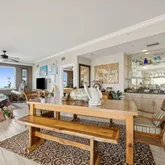 - Public Remarks: Welcome to this stunning 2-bedroom, 2-bath penthouse-level condominium in the highly sought-after oceanfront Surf Club community. From the moment you pass through the security-gated entrance, a lush, tropical drive leads you to your garage with ample parking and convenient elevator access. Inside, you are greeted by a beautifully appointed interior and an open floor plan filled with natural light pouring through expansive sliding glass doors showcasing gorgeous ocean views. The main living space includes a well-designed kitchen with ample counter space, an elegant dining area, and a comfortable living room that opens to an enormous outdoor lanai—ideal for creating a true second living or entertainment space. This relaxed yet updated coastal home features modern lighting and fan fixtures, tile flooring, carpet, and soothing neutral paint tones.