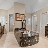 - Flooring: Carpet, Travertine Stone