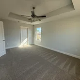 - Interior: Ceiling Cathedral, Ceiling TrayCofferd, Floor Vinyl, Floor WW Carpet New, Lighting Recessed, Pantry, Pull Down Stairs, Split Bedroom, WasherDryer Hookup
