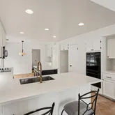 - Room Kitchen Features: Kitchen Open to Family Room, Kitchen Island, Pots & Pan Drawers, Quartz Counters, Utility sink, Walk-In Pantry