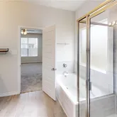 - Interior Features: Attic, BuiltInFeatures, CeilingFans, DoubleVanity, EntranceFoyer, EatInKitchen, GardenTubRomanTub, PrimaryDownstairs, LivingDiningRoom, MultipleLivingAreas, MainLevelPrimary, OpenFloorplan, PullDownAtticStairs, RecessedLighting, SeparateShower, TubShower, WalkInClosets, BreakfastBar, BreakfastArea, CustomCabinets, KitchenIsland
