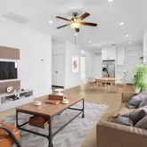 - Interior Features: Double Vanity, High Ceilings, Kitchen Family Room Combo, Pantry, Window Treatments, Ceiling Fans