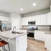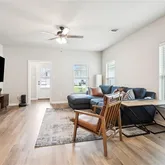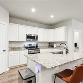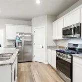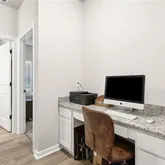 The heart of the home is a sleek, contemporary kitchen featuring stainless steel appliances, a gas range, generous island, and walk-in pantry--perfect for cooking, gathering, and hosting. A convenient office nook provides the ideal space for working from home, while the dedicated utility room and tankless water heater add everyday practicality and efficiency. Luxury vinyl flooring flows throughout the main living areas, enhancing the home's clean, modern feel.