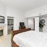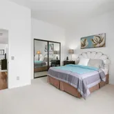 and new paint throughout. The second level features a full-sized dining room, eat-in kitchen, and a powder room. The third level boasts a palatial master bedroom with new carpet and an elevated ceiling, fireplace, enormous walk-in closet, and a glass slider opening onto a large balcony. The spacious master bath has a jetted spa tub, two sink vanities and a remodeled stonework shower. The secondary ensuite bedroom has new carpet, an enclosed
