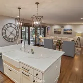 - Room Kitchen Features: Kitchen Island, Kitchen Open to Family Room, Quartz Counters, Remodeled Kitchen, Walk-In Pantry